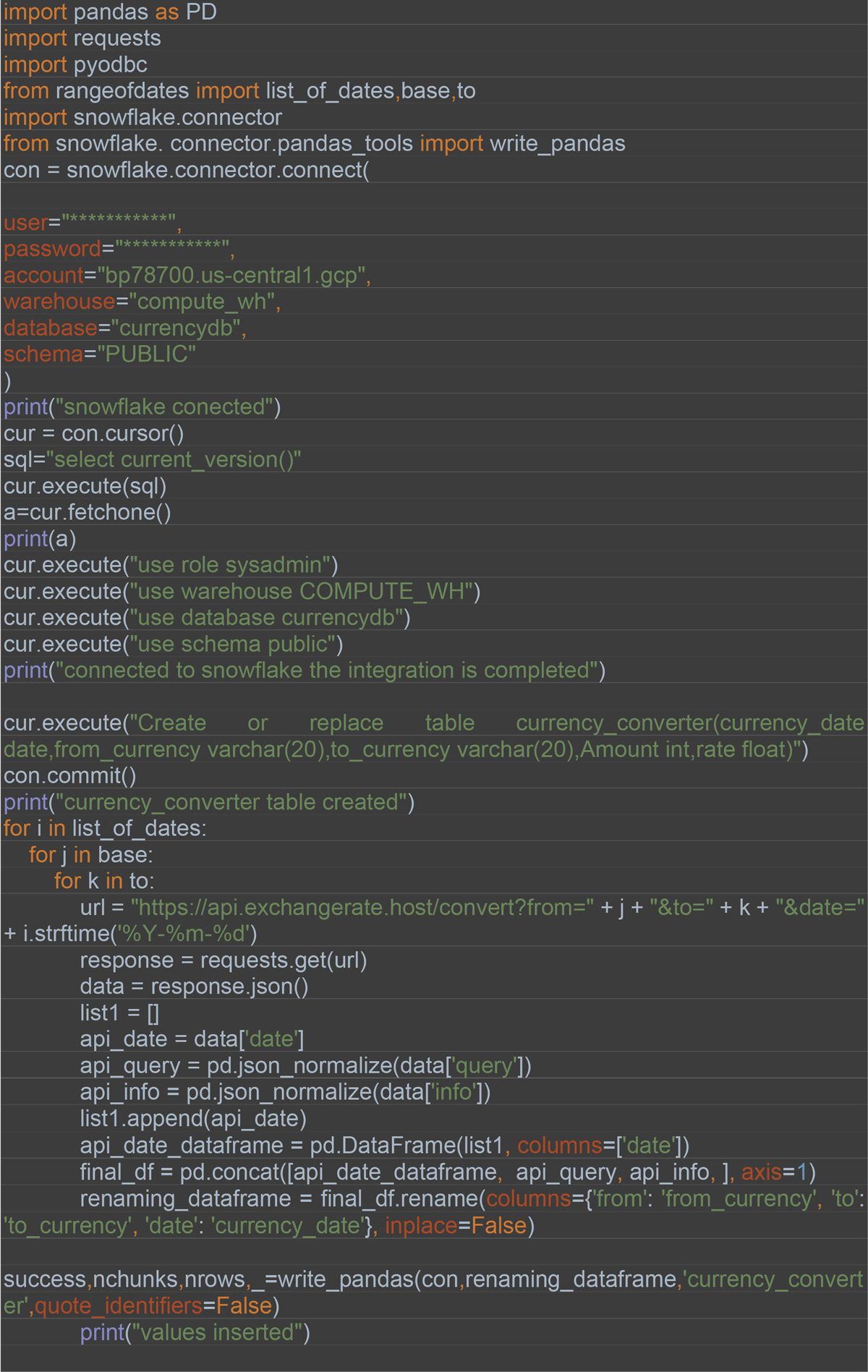 Here is how we have used Python as a coding language and Snowflake as the database.