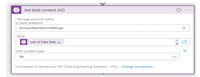 Step 3: To get blob content, add a storage account name and take a list of files path in the blob.