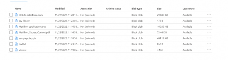 This is the final output from getting updated files from Azure Blob Storage to Salesforce.