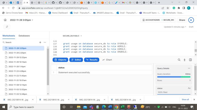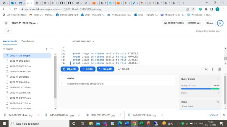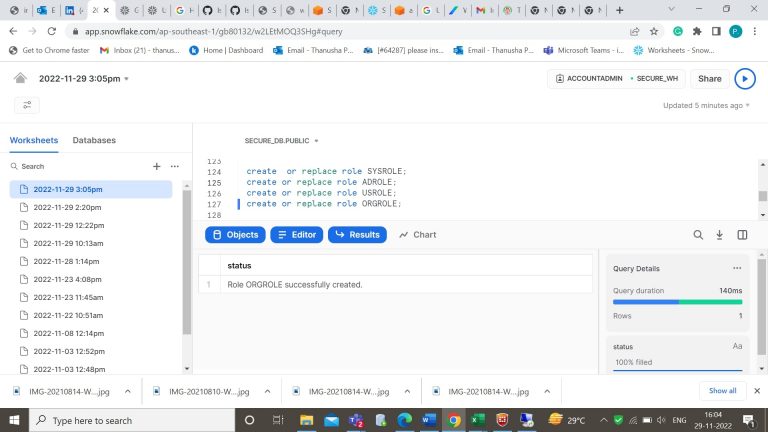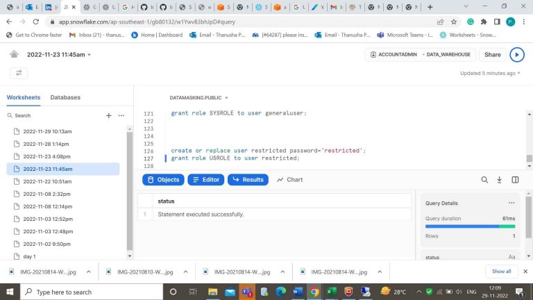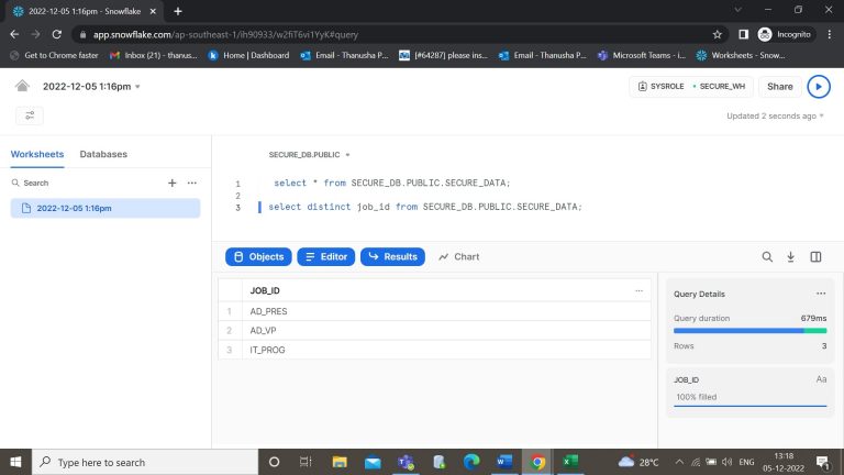 - Step-26: By using the role and data warehouse you can access the table. Here for USROLE role I have assigned only the IT_PROG dept_names.