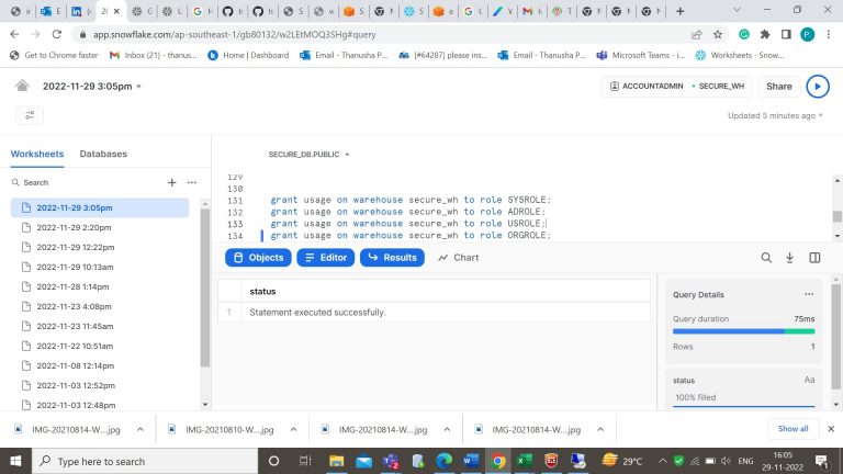 - Step-15: Grant t permission on usage of warehouse for the created roles.