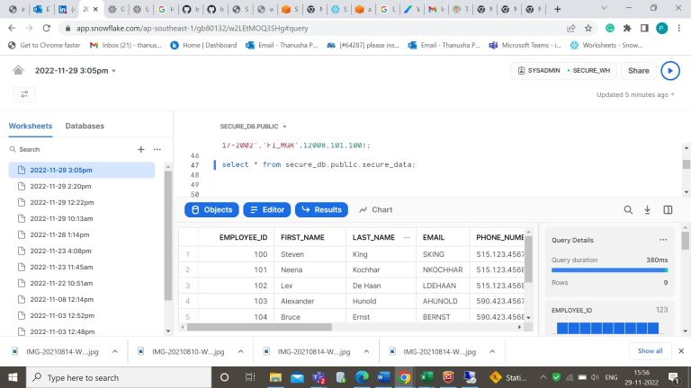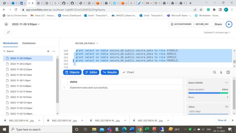 - Step-13: Select the data from the table. As it is in Accountadmin the data is visible.