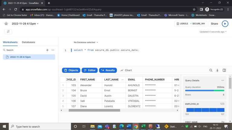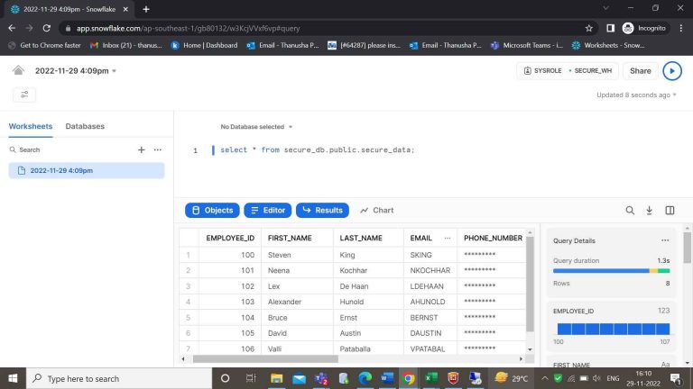 - Step-8: Now change the role and then see the data in the table. (Phone_number column in the table is masked)