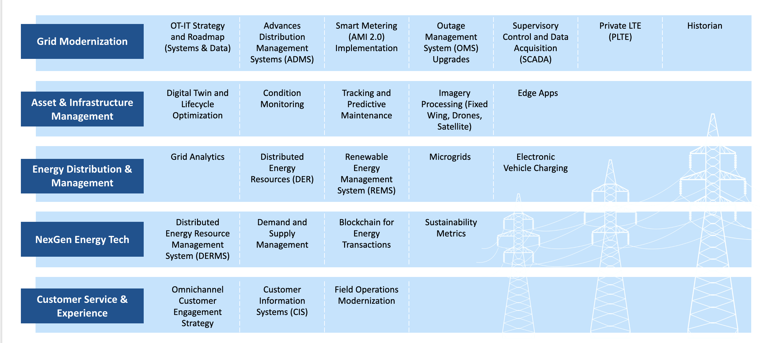 We drive digital transformation by leveraging AI, advanced analytics, blockchain, and innovative solutions to enhance operational efficiency. Our solutions empower utilities to optimize performance, reduce costs, and improve customer experiences.