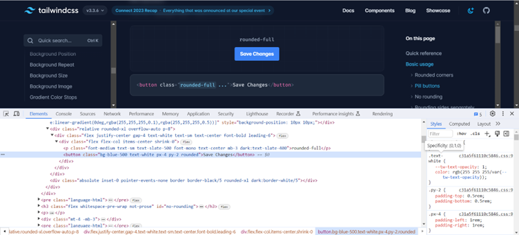 In this case, the button’s background color, text color, padding, and border radius are defined by multiple utility classes. When you see the element with all the classes applied, you get a complete picture of how Tailwind’s utility classes work together to create the style.