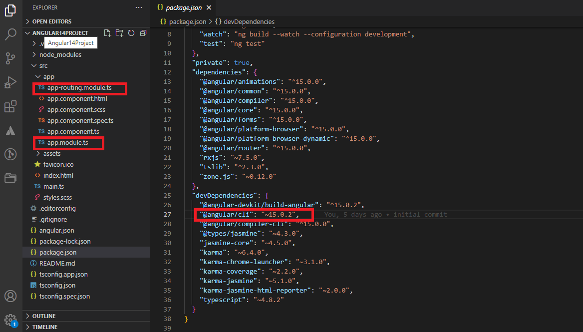 Please Identify that we are using Angular/CLI: 15.0.2. By default, we have an app routing module file and module file, and we are using it.