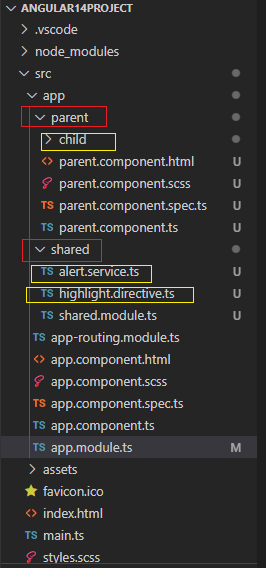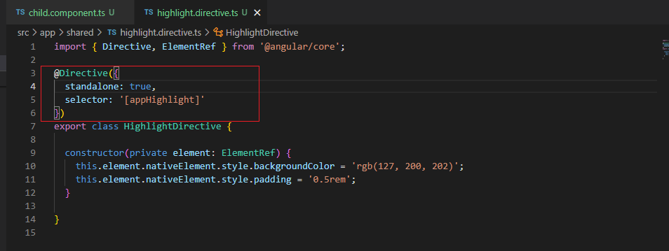 As we are directly calling the highlight directive in the child Component. We can now delete the shared module, as we no longer need it.