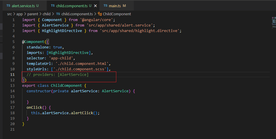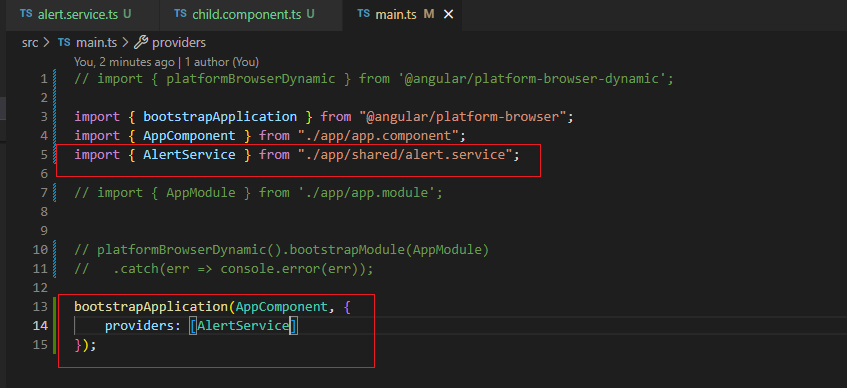 If we want to reuse a standard service without creating multiple instances, we must change our bootstrapping code in the Main Ts file.