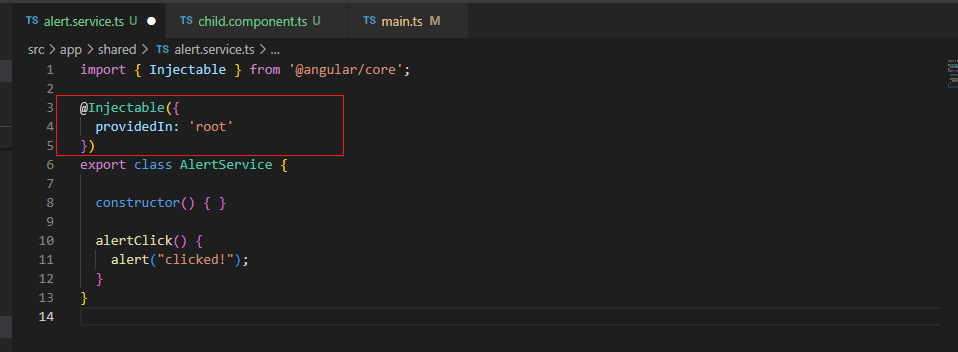 If you want to use any Service globally, then you can follow the Second Approach; otherwise, the most recommended way is to add the provide-In object in the Injectable annotation in the respective service Ts file and don’t include it in the components and the main Ts file, as shown in below: