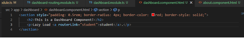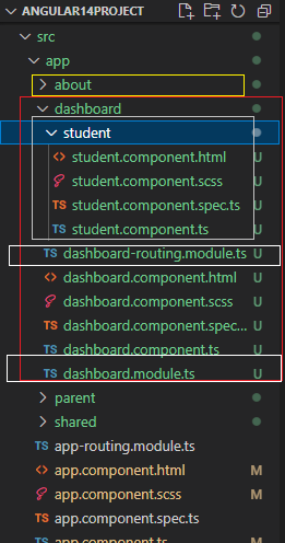 - Inside the Dashboard Component, we have the Student Component, dashboard module, and routing module Ts files.