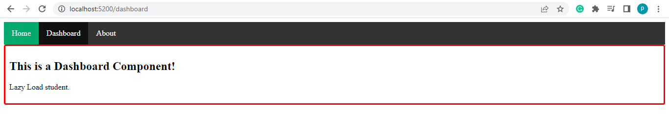 - Navigate the Dashboard route and get Dashboard Component loaded.