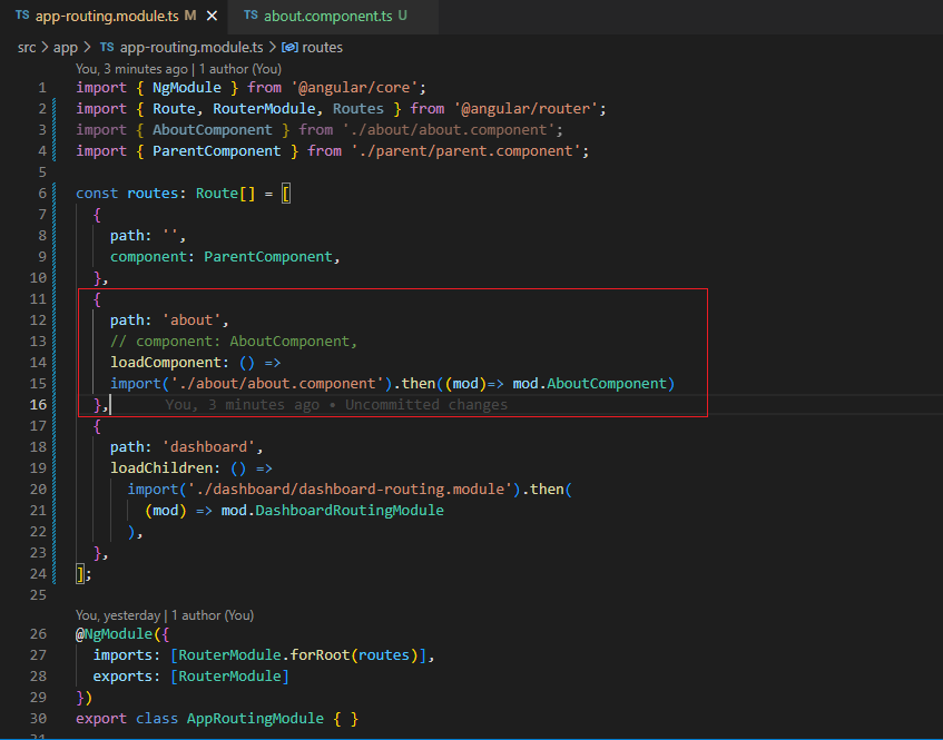 The load-Component statement is used to Lazy -Load the Standalone Component route, as shown below: