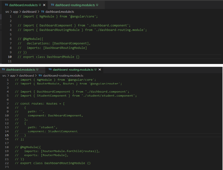 Once we make the above changes, we can remove the dashboard routing module and dashboard module, as we no longer use them in our application.