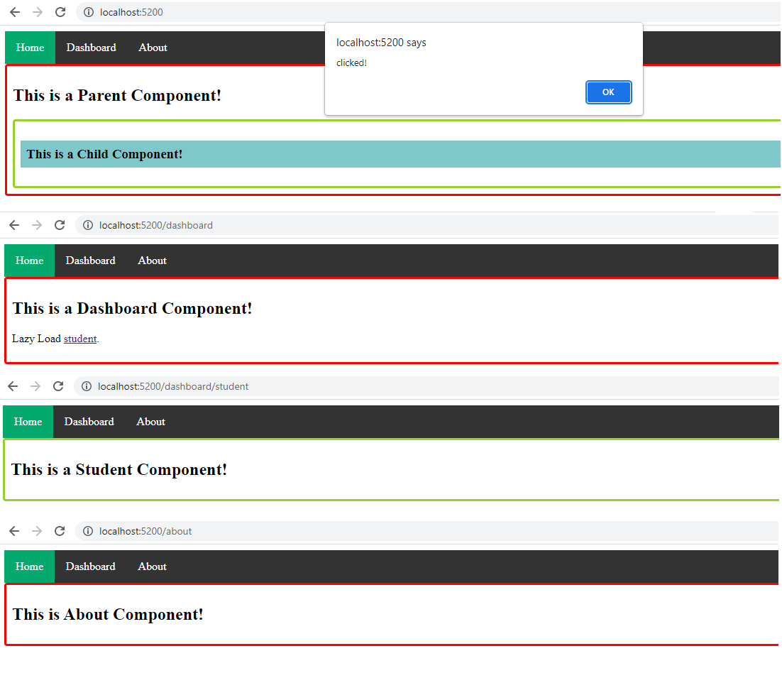 Create About, Dashboard, and Student Components by following the above-discussed structure. Ensure to include the Dashboard module and routing module files in the Dashboard Component.