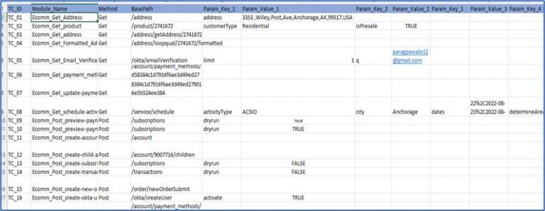 TestData Sheet: It contains all the API Methods, Basepath, Query parameters, and Path parameters.