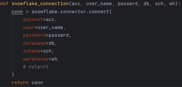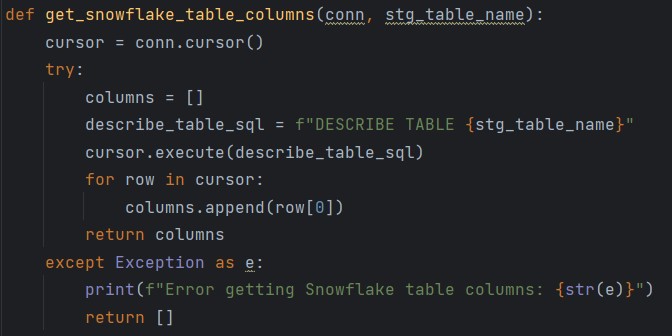 Once connected to snowflake, we then check for table description to avoid feature errors with table structure. We add missing columns to the data frame and fill with NAN; then we use “write_pandas” to load the data into snowflake table.