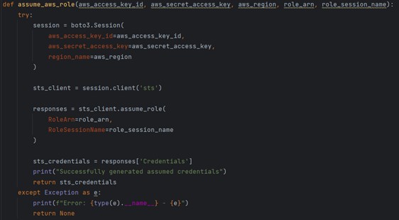 The following function connects to AWS STS service and generates temporary Access-key-ID and Secret-access-key.