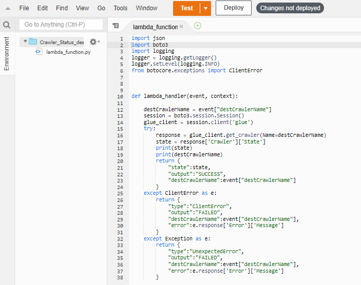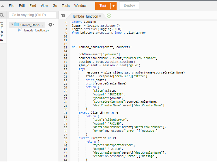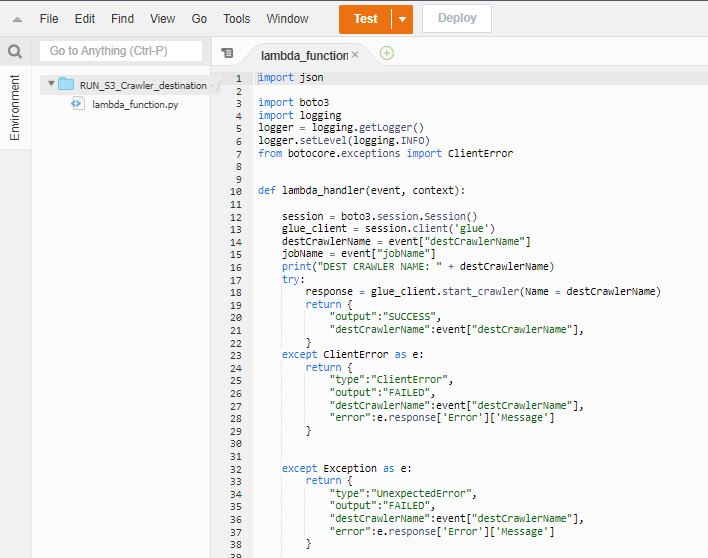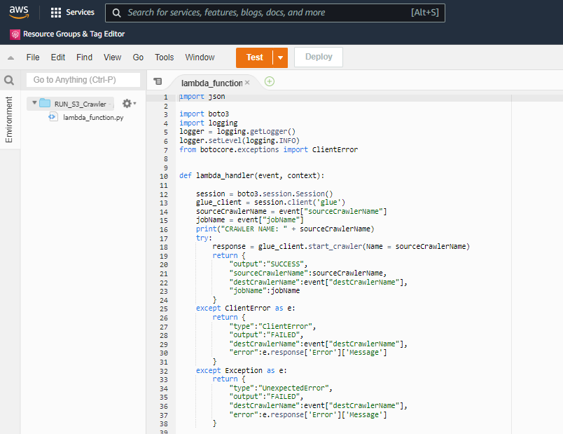 Lambda Function 1: running the source crawler