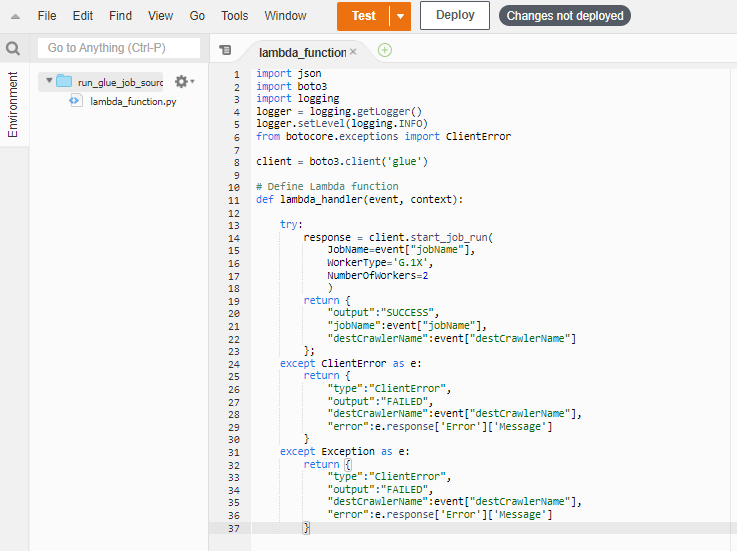 Lambda Function 3: run the GLUE Job (only after successful run of source CRAWLER)