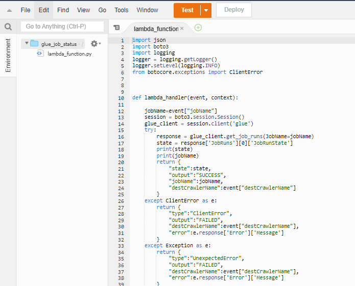 Lambda Function 4: GLUE job status