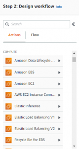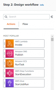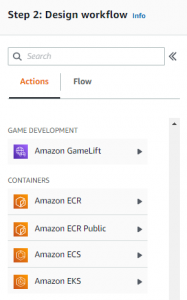 - Actions: the workflow is a combination of actions and flow components. The actions combine with flows to form a state machine.