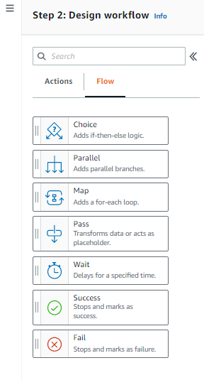 Design Workflow: Choice, Parallel, Map, Pass, Wait, Success, Fail