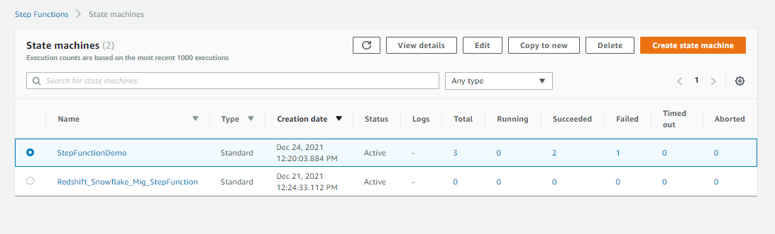 - Execute your Workflow- one can start the state machine to run the step function. The SF can be triggered in below mentioned ways: