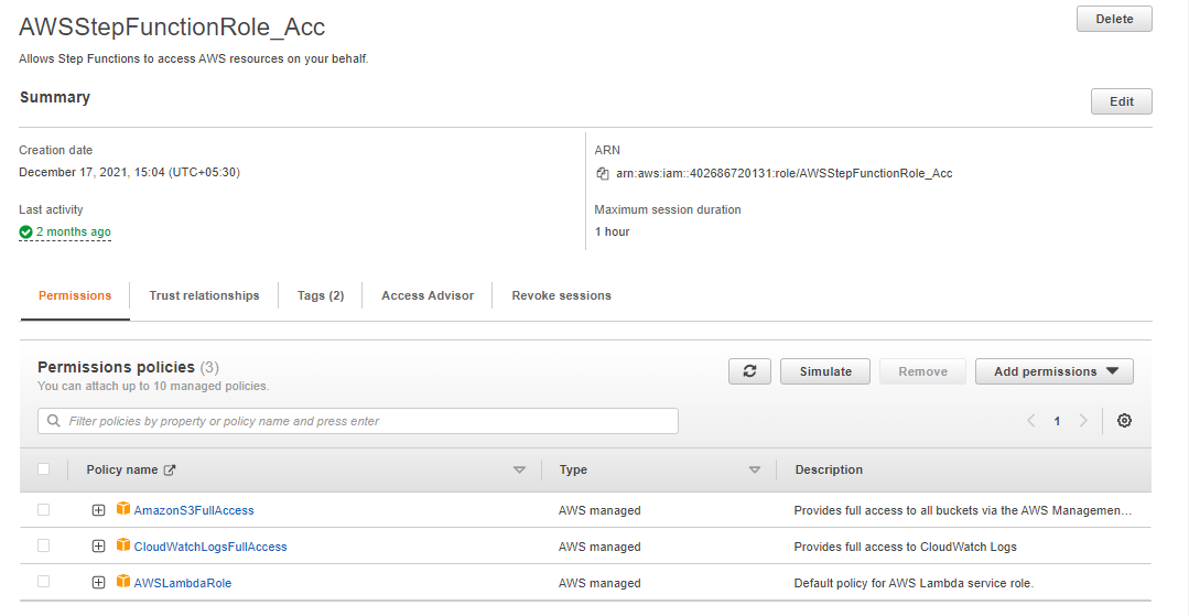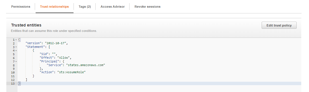 - Add the IAM Role to the state machine.