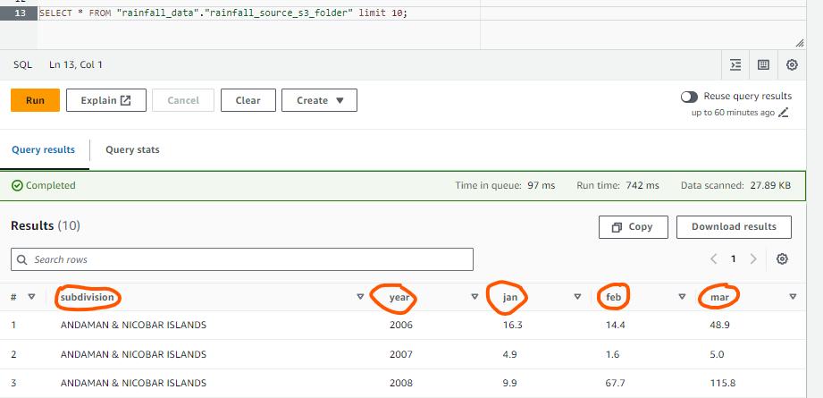 - SELECT query to run on ATHENA for IAM User 1: