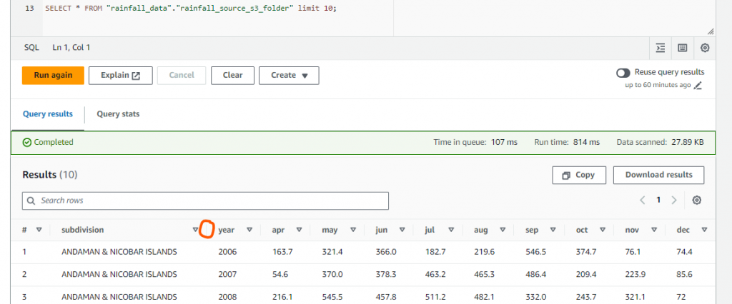 NOTE: As per the results of the above rules, when you query with different users in ATHENA console, you will see the results as per the filters selected above.