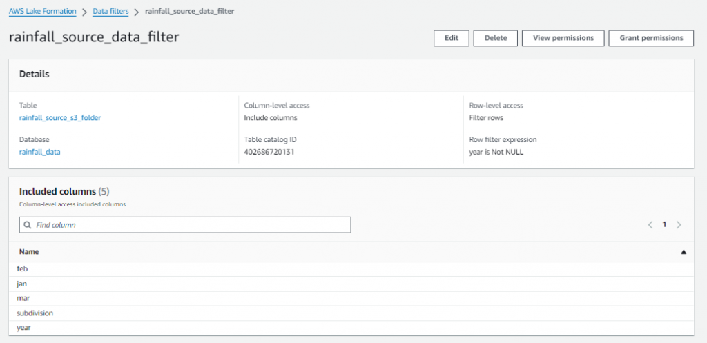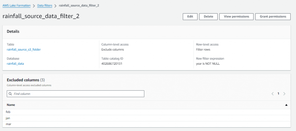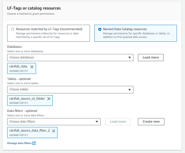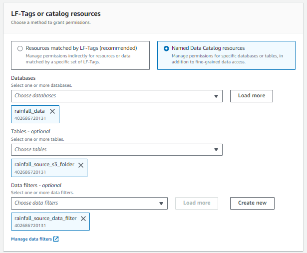 - Setup the Data Lake permissions: In this step, you apply the rules of LF for IAM users.