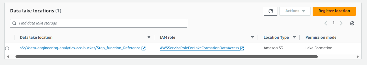- Register a DATA LOCATION with S3 (associating the IAM role). After doing this, you will be able to control all permissions on this location using LF.