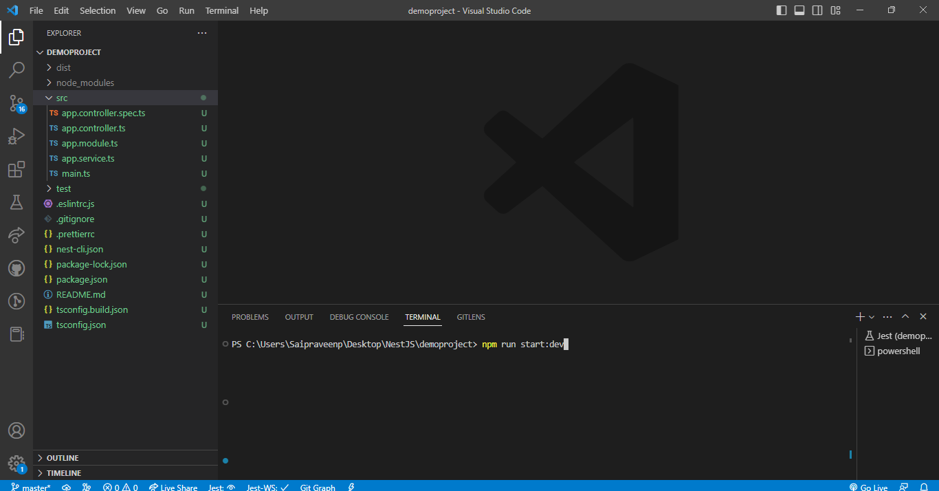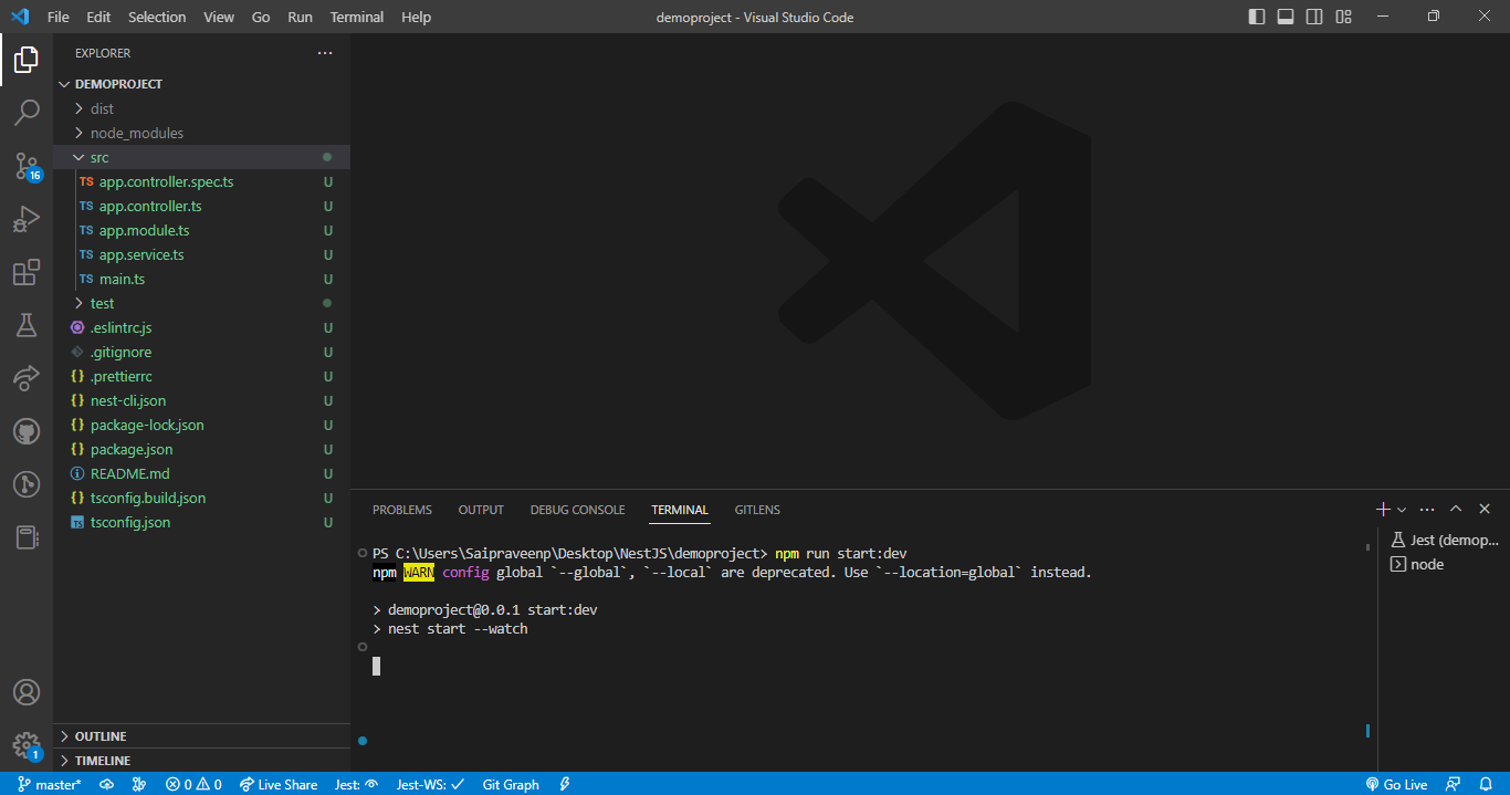 • To create a Nest project perform the below command