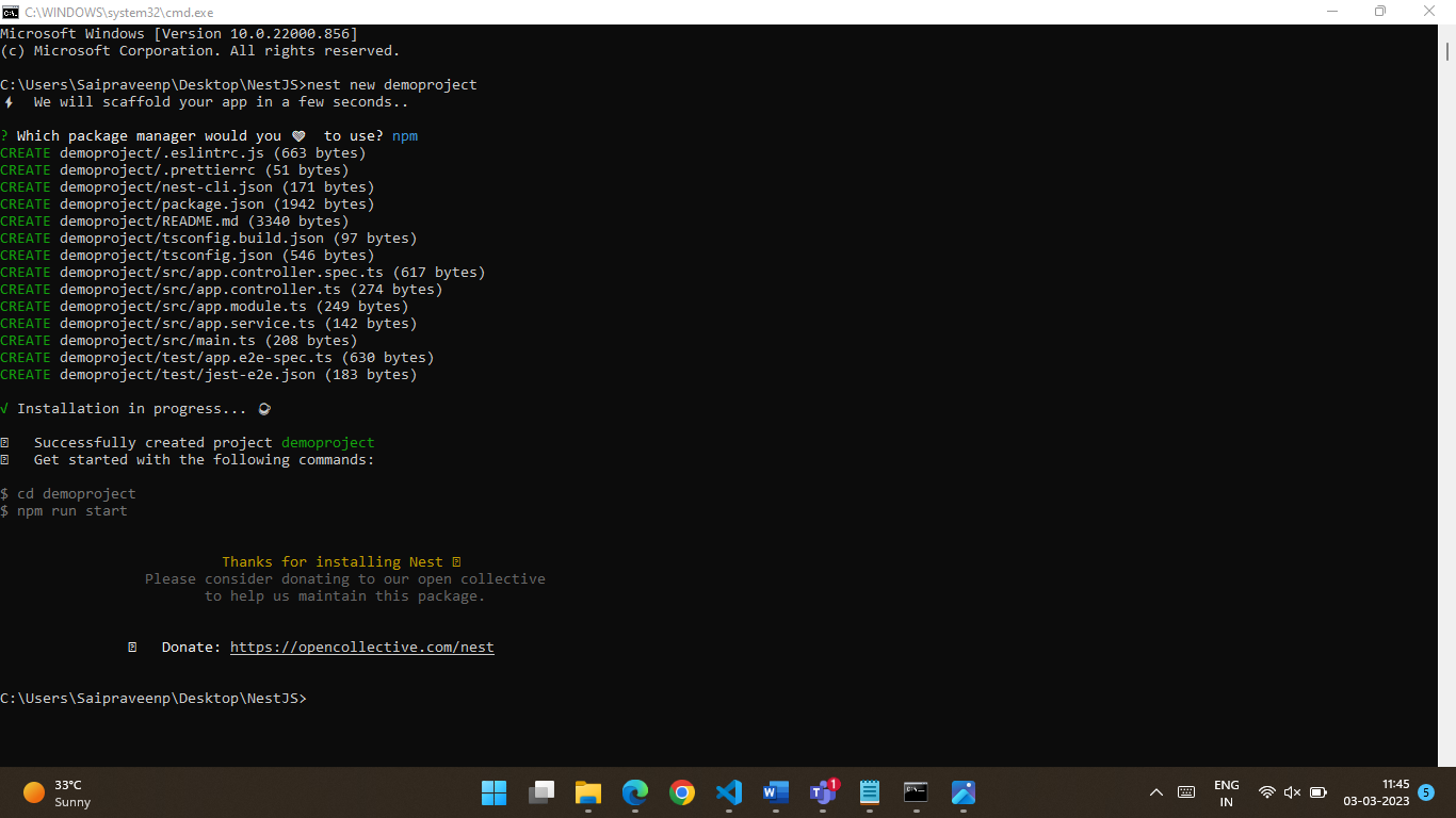 3. Installation of Nest JS.