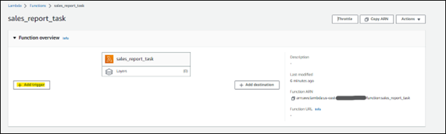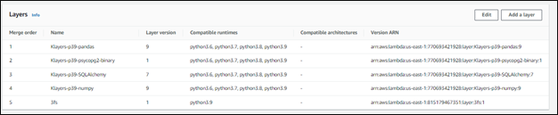 NOTE: If you want to use any other external libraries in your Lambda task, we may either add it to the AWS layers you already created, or we can ARN to the specific library seen in the picture below.