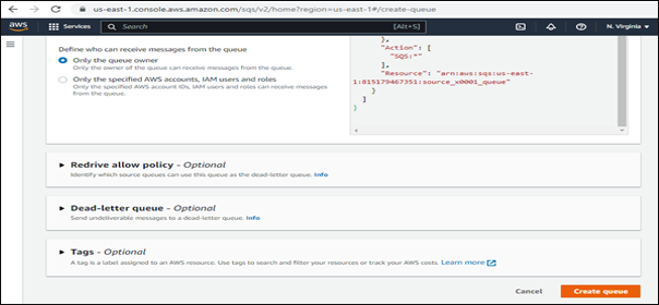 - To build an Amazon SQS queue (console), Open the Amazon SQS console at https://console.aws.amazon.com/sqs/ and Select Create a queue.