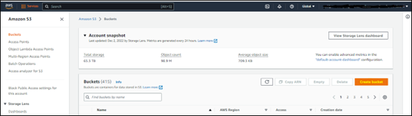 - Sign into the AWS Management Console and go to https://console.aws.amazon.com/s3/ to access the Amazon S3 interface. Choose Buckets from the left-hand navigation menu. Choose the Create bucket option.