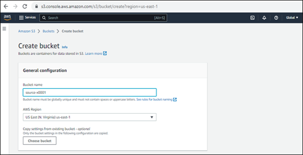- The Create bucket page appears. Fill up the Bucket name area with a name for your bucket. Lastly, click on the Create Bucket button.