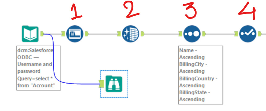 - Once the data is extracted from Salesforce, the next step is to transform it as needed. This might include cleaning, filtering, or aggregating the data. The sample workflow includes several tools for data preparation as mentioned below image: