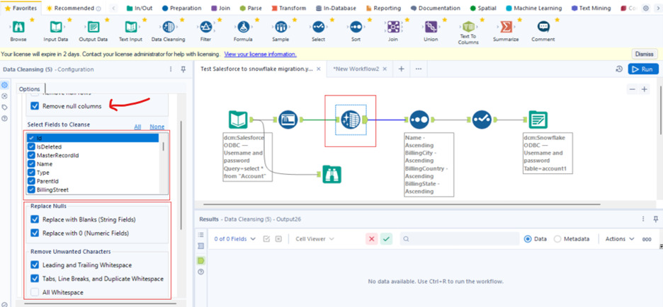 2. Data Cleaning Tool: The Data Cleansing Tool helps you clean and prepare your data by addressing common data quality issues such as removing unwanted characters, handling nulls, and standardizing cases.
