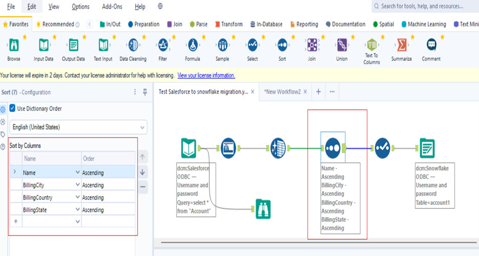 3. Sort Tool: The Sort Tool organizes your dataset based on one or more fields, essential for analysis and reporting. In our workflow, we sort columns in ascending order using the tool, as shown in the image below.