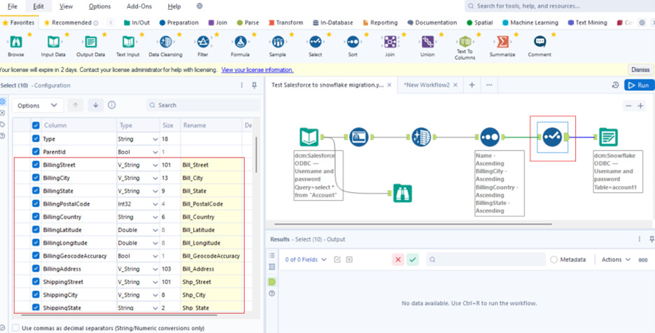 >> Here in our workflow, we are renaming the column names using the Select Tool.