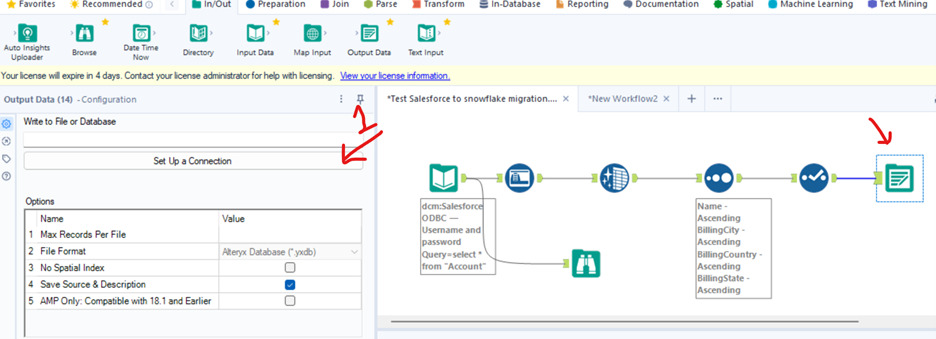 - Snowflake Output Tool: Drag and drop the Snowflake Output Tool onto the canvas.