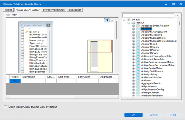 - select the object or table from which you want to extract data. In our example, we’re extracting data from the ‘Account’ table.