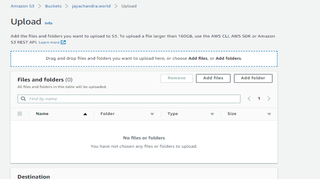 Step 3: Upload a sample website and click on Jayachandran. world -> Objects -> Upload -> Add Files.