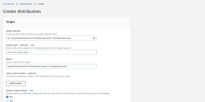 Note: In this case, my provisioned distribution is Jayachandra.world.s3-website.ap-south-1.amazonaws.com.