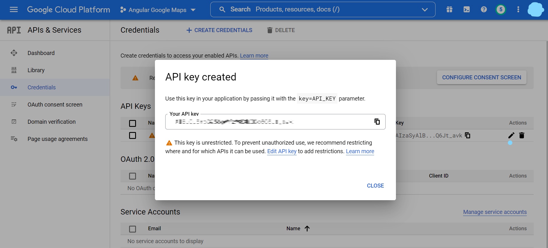 • A Google Maps API key is a unique identifier provided by Google to access Google Maps in the project. Google uses an API key to authenticate the requests for usage.