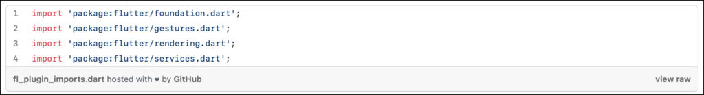 In the Dart file under lib/FLPlugin.dart,create a new widget and add the below code implementation and for importing.