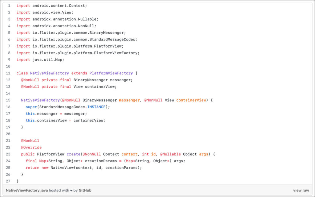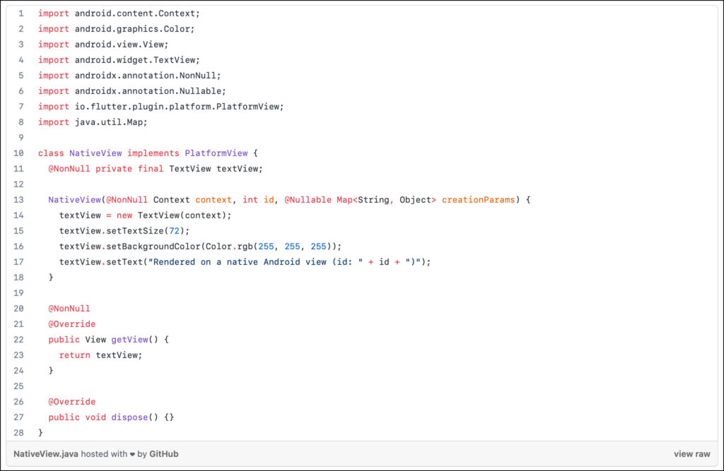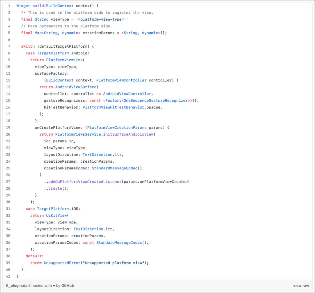Let us look into the code implementation for different platforms. Below are the steps to follow to create a platform view. We will first discuss the on the dart side implementation and then look into the native platform side.