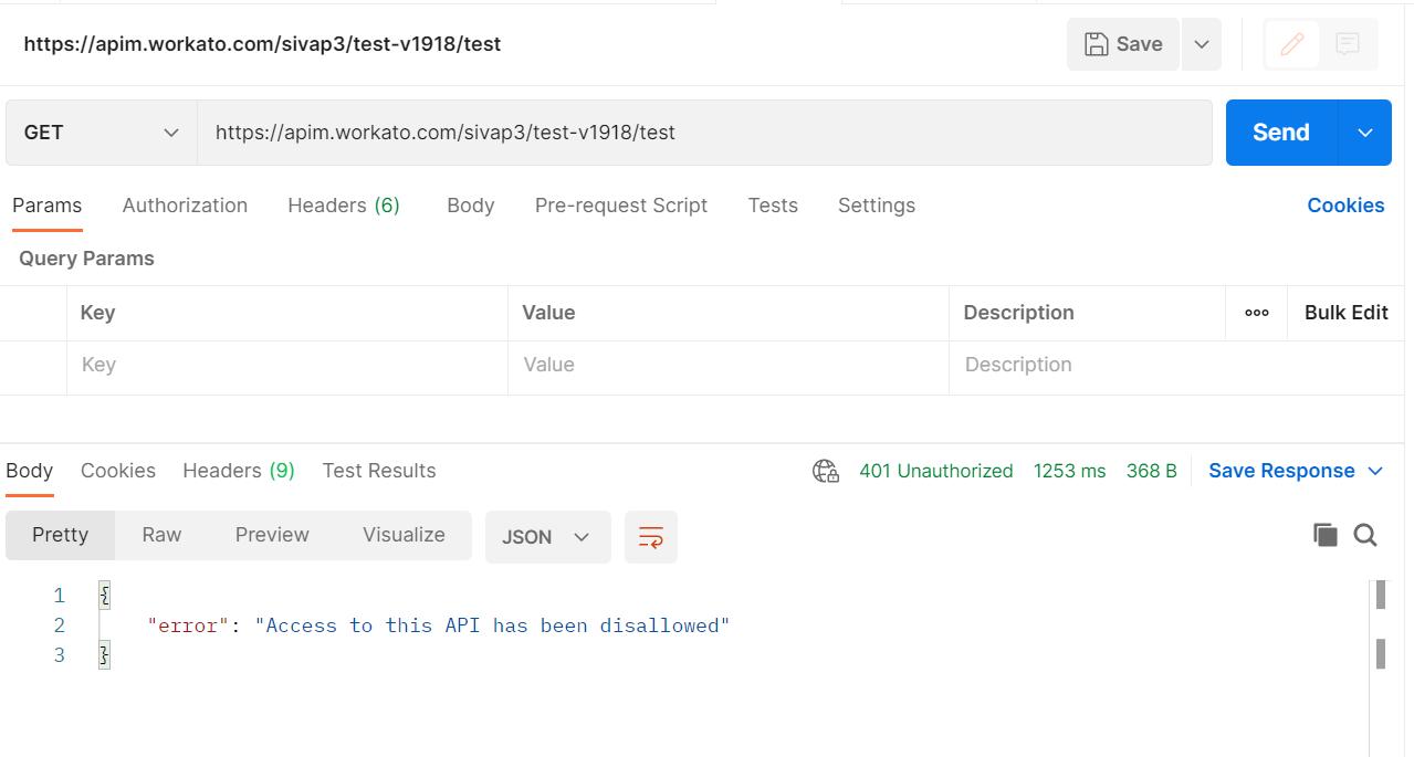 No Authorization has been selected.Test the URL. As shown in the above image, it will throw an error.